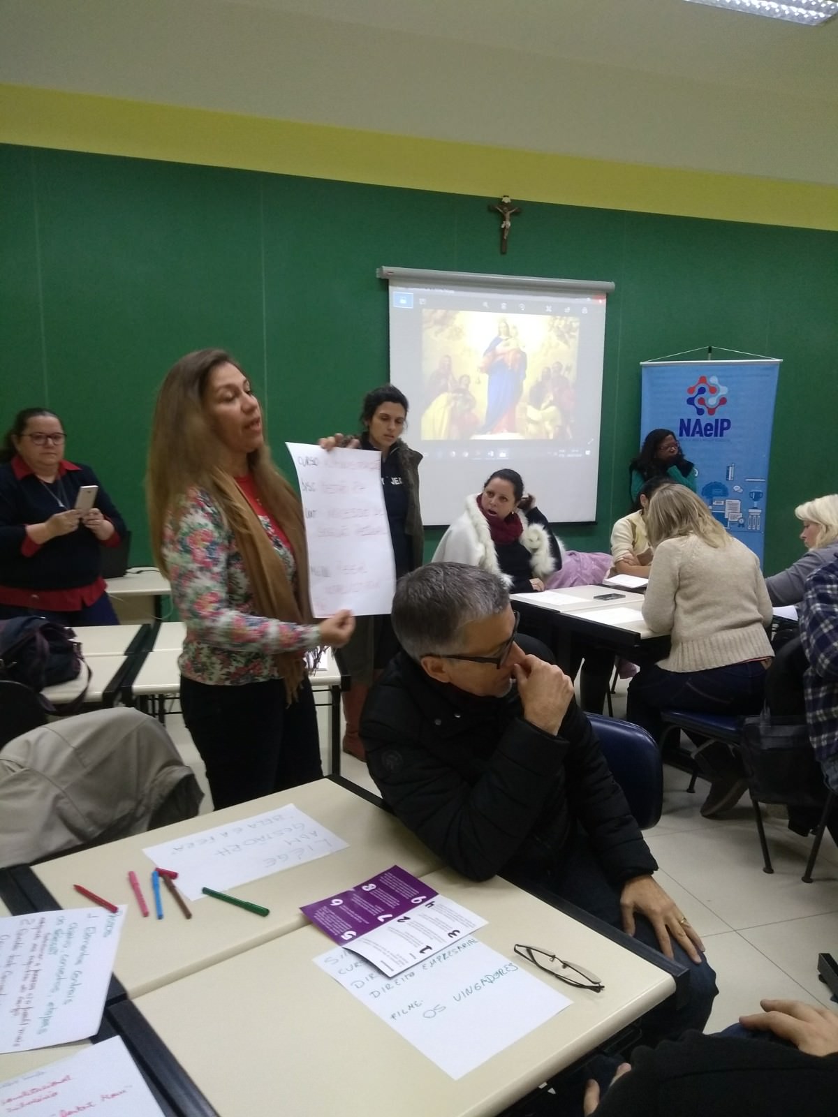 Durante o 45º Seminário de Professores da Faculdade Dom Bosco de Porto Alegre foi realizada uma atividade coordenada pelo NAeIP (Núcleo de Apoio e Inovação Pedagógica) para conhecimento e aprofundamento das Metodologias Ativas com o corpo docente da Instituição. Para esta atividade foram desenvolvidos folders com esquemas para as metodologias ativas e técnicas que já haviam sido trabalhadas em formações anteriores conduzidas pelo NAeIP.