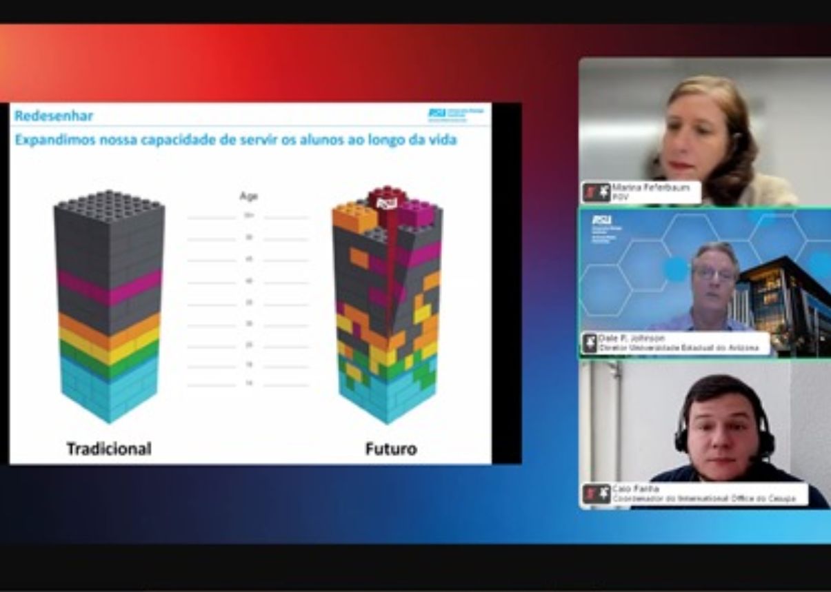 O educador também enfatizou a necessidade de integrar os setores das instituições e fazer os estudantes aprenderem durante toda a vida. “A demanda hoje de alunos na Universidade Estadual do Arizona, que é uma instituição pública, metade estão on-line e isso exige um novo design operacional. Também alunos que buscam novas habilidades têm necessidades diferentes. Temos de construir uma abordagem holística para a transformação universitária e o apoio das lideranças é fundamental. Também focar no desenvolvimento do corpo docente com três tipos de treinamento: o pedagógico (que enfatize o aprendizado interativo); o tecnológico (que crie experiência em sistema on-line) e a facilitação de grupos (que desenvolva habilidades instrucionais).